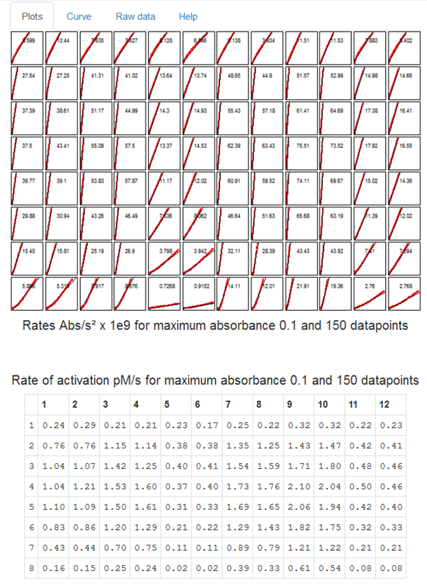 ►With time squared selected, you can also calculate zymogen activation rates in pM/s if you know the constants for the enzyme on the chromogenic substrate in the boxes shown